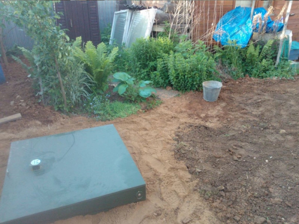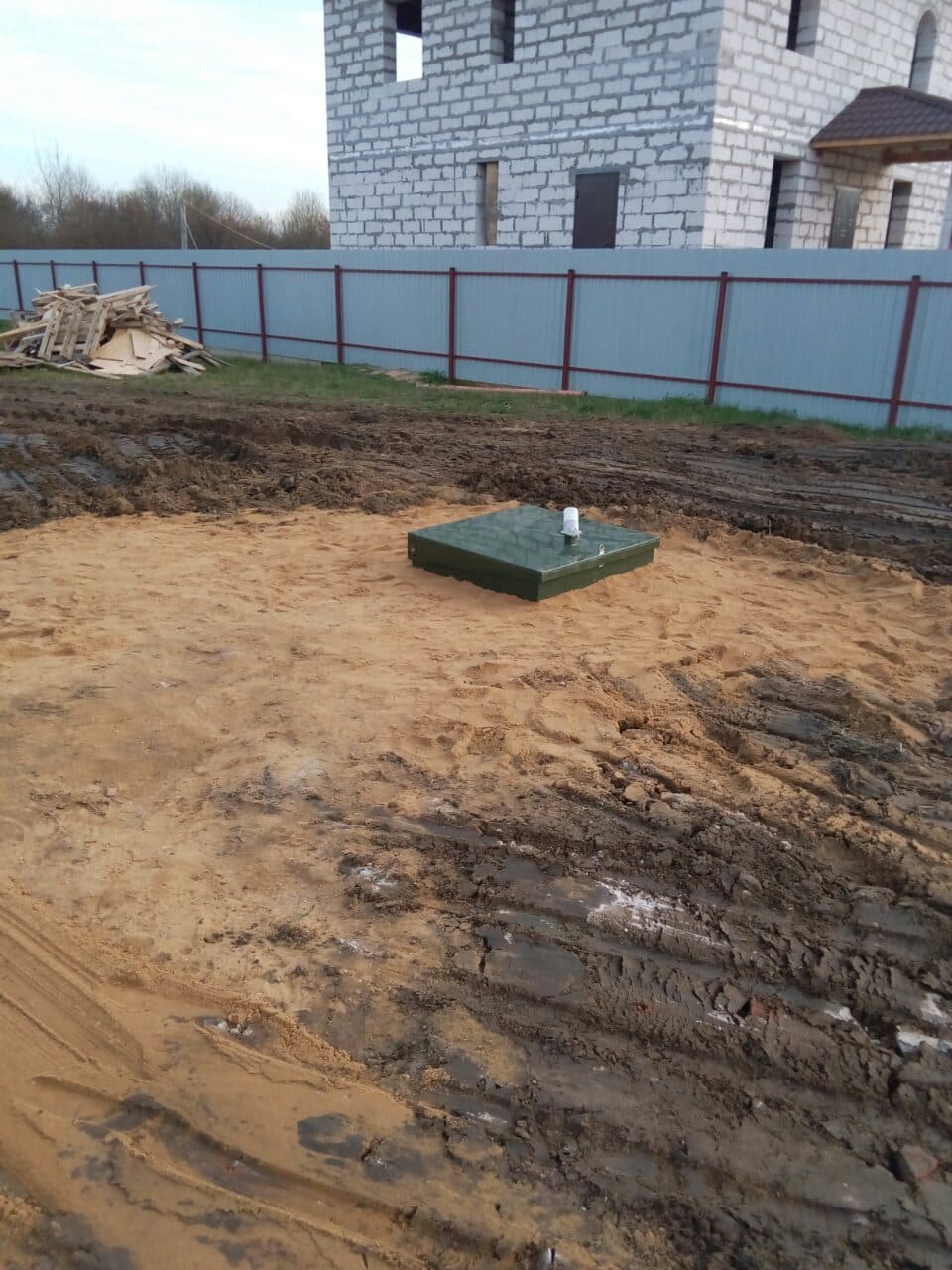 - Установка септика в котлован, герметизация